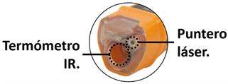 • Láser que actúa como puntero, a la vez que ayuda a enfocar el área de medición de temperatura mediante detector IR (infrarrojo).
