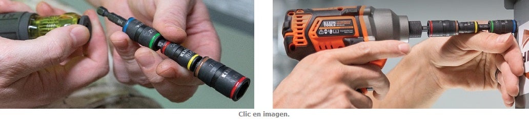 Avancemos y abordemos otra línea de productos muy deseada por los profesionales, los desarmadores de caja Klein. En ellos usted podra encontrar todos los tamaños que necesita en una sola herramienta. Su barra integrada desarmador/desarmador de caja, sirve para colocar puntas comunes y se convierte en un desarmador de caja de varios tamaños. El modelo que además reune el beneficio de ser magnetico es el 32500MAG permitiendo sostener firmemente puntas y sujetadores. Al final, usted tendra 3 tamaños de desarmadores de caja (3/8'', 5/16'', 1/4''), así como 8 diferentes tipos de puntas (Phillips #1 y #2, Planas 1/4'' y 3/16'', TORX® T10 y T15 y Cuadradas #1 y #2).