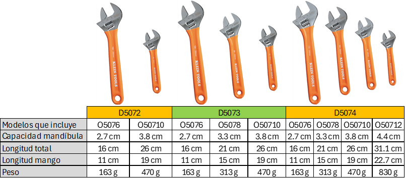 Adicionalmente, contamos con las tradicionales llaves ajustables cuya variedad en tamaños y combinaciones es bastante amplia siendo las de mayor uso en el ramo de la plomería: