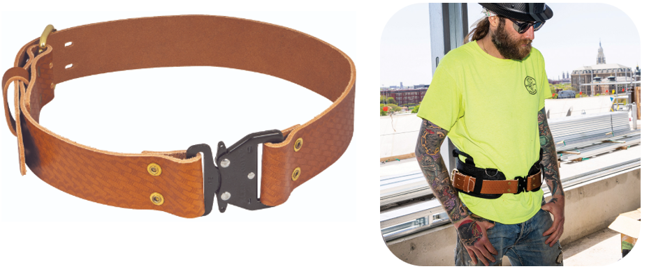 Las herramientas deben hacer que el trabajo más pesado sea menos difícil. Bajo esta premisa, la nueva línea de Klein comprende como elemento básico, un cinturón de cuero de liberación rápida: mod. 5826XL Talla Extra Grande, mod. 5826L Talla Grande y mod. 5826M Talla Mediana: