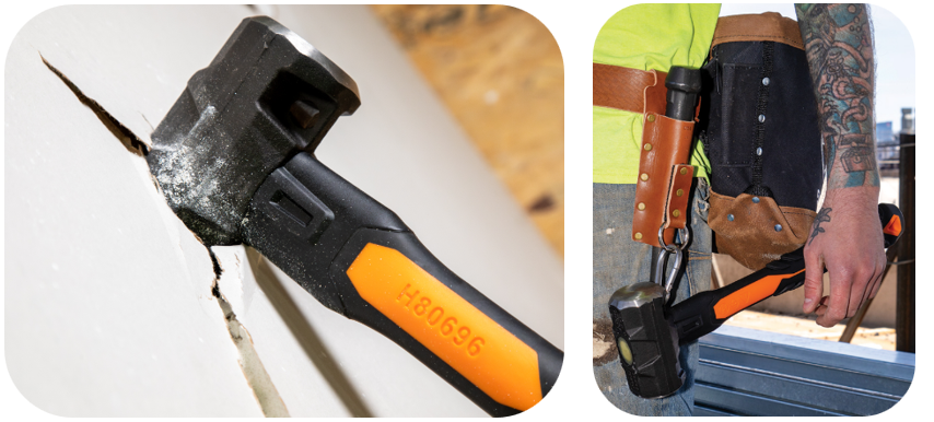 Esta herramienta cuenta con cabeza de acero aleado que permite ejercer mayor fuerza de impacto. Su mango robusto de fibra de vidrio cuenta con agarres de amortiguación que proporcionan protección y comodidad para el usuario.