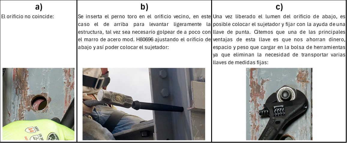 Este método es frecuente verlo al ensamblar andamios, cerchas de iluminación y otras estructuras metálicas sujetadas con pernos o remaches. Repasemos el ABC: