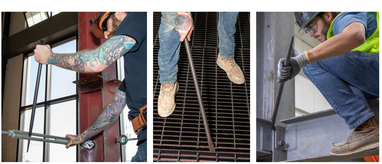 Este producto resulta útil para tener a la mano una barra de conexión. La barra de conexión toma relevancia ante tres situaciones: cuando se requiere apalancamiento extra, ante la alineación de estructuras metálicas de gran peso y al alinear orificios para pernos: