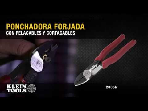 La ponchadora forjada con pelacables/cortacables combina los tamaños de pelacables de uso más frecuente con una ponchadora dedicada y dos cortacables. Pela cable trenzado de 10-18AWG y poncha terminales y conectores con y sin aislamiento de 10-22AWG. El diseño forjado le ofrece la herramienta de nivel profesional que usted espera de Klein. En la punta cuenta con un cortador de cables especialmente reforzado y un cortador tipo cizalla en la parte inferior para cables de cobre y aluminio.