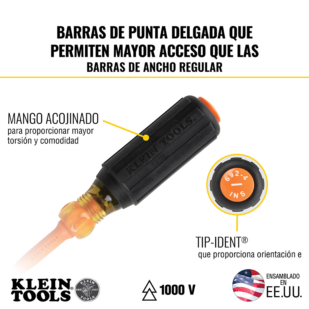 - Antes de trabajar con o cerca de líneas o equipos, recuerde desenergizarlos cuando sea posible. Las herramientas con aislamiento de Klein están diseñadas solo para reducir el riesgo de lesión cada vez que tengan contacto con una fuente energizada.