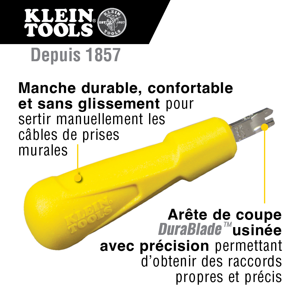 - Herramienta ponchadora tipo 110 con el exclusivo filo de corte Dura-Blade™ de Klein para terminaciones de cable limpias y precisas