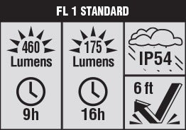 - Luz duradera con resistencia a las caídas desde 6' y es resistente al agua y al polvo (IP54)