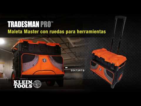 La resistente maleta Master con ruedas para herramientas Tradesman Pro™ de Klein Tools se desplazará fácilmente por terrenos irregulares con sus ruedas de 8'' (203,2 mm), gran elevación, y un asa extensible de alta resistencia. Transporte hasta 250 lb (113 kg) de herramientas en su interior de amplia abertura. Organice artículos más pequeños en 19 bolsillos interiores y exteriores hechos en duradera tela balística de 1680 d. La tapa dura permite apilar y tiene compartimientos para almacenar su teléfono celular, bebidas o piezas pequeñas. Fije la luz LED o el altavoz inalámbrico Klein en el montaje frontal (se venden por separado).