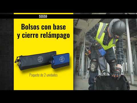 Acceda fácilmente a herramientas y piezas pequeñas con los bolsos con base y cierre relámpago de Klein Tools. Este juego incluye un bolso para herramientas gris oscuro de 14'' y un estuche azul Francia de 7'' para organizar las herramientas por tarea específica. Cada bolsa con cierre relámpago incluye un mosquetón que se adhiere fácilmente a bolsos o cinturones para herramientas (no sirve para sostener personas).