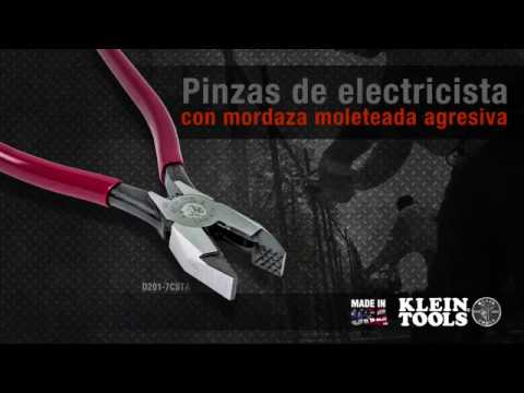 Estas pinzas de electricista sirven para cortar y doblar alambre de unión reforzado. Cuentan con dientes de mordida agresiva que ofrecen un agarre firme para doblar y jalar alambres. El diseño de accionamiento de resorte permite la apertura automática. El mango de templado exclusivo absorbe el “chasquido” al cortar el cable. Extremo curvo en el mango que proporciona mejor acción de agarre y palanca.
