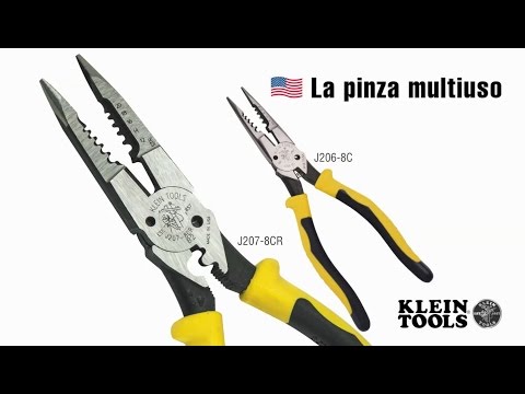 Las pinzas multiuso combinan las funciones de un pelacables y una pinza de punta. Esta herramienta corta, pela y enlaza cable sólido de 8-16 AWG y cable trenzado de 10-18 AWG. La punta larga es ideal para sujetar y enlazar cables. También cuenta con agujeros para corte que permiten cortar tornillos de 6-32 y 8-32. Posee un mecanismo de resorte para apertura automática.