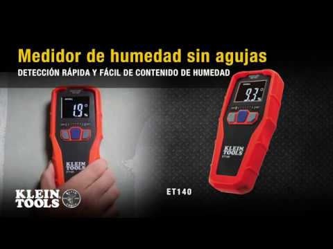 El medidor de humedad ET140 de Klein Tools está diseñado para detectar el contenido de humedad relativa oculta de forma no invasiva hasta 3/4'' (19 mm) de profundidad. Seleccione fácilmente entre materiales con el botón modo para hacer pruebas sobre superficies de placa de yeso, concreto, madera dura y blanda. El ET140 tiene visualización sencilla con una pantalla brillante de contraste invertido y gráfico de barras de LED.